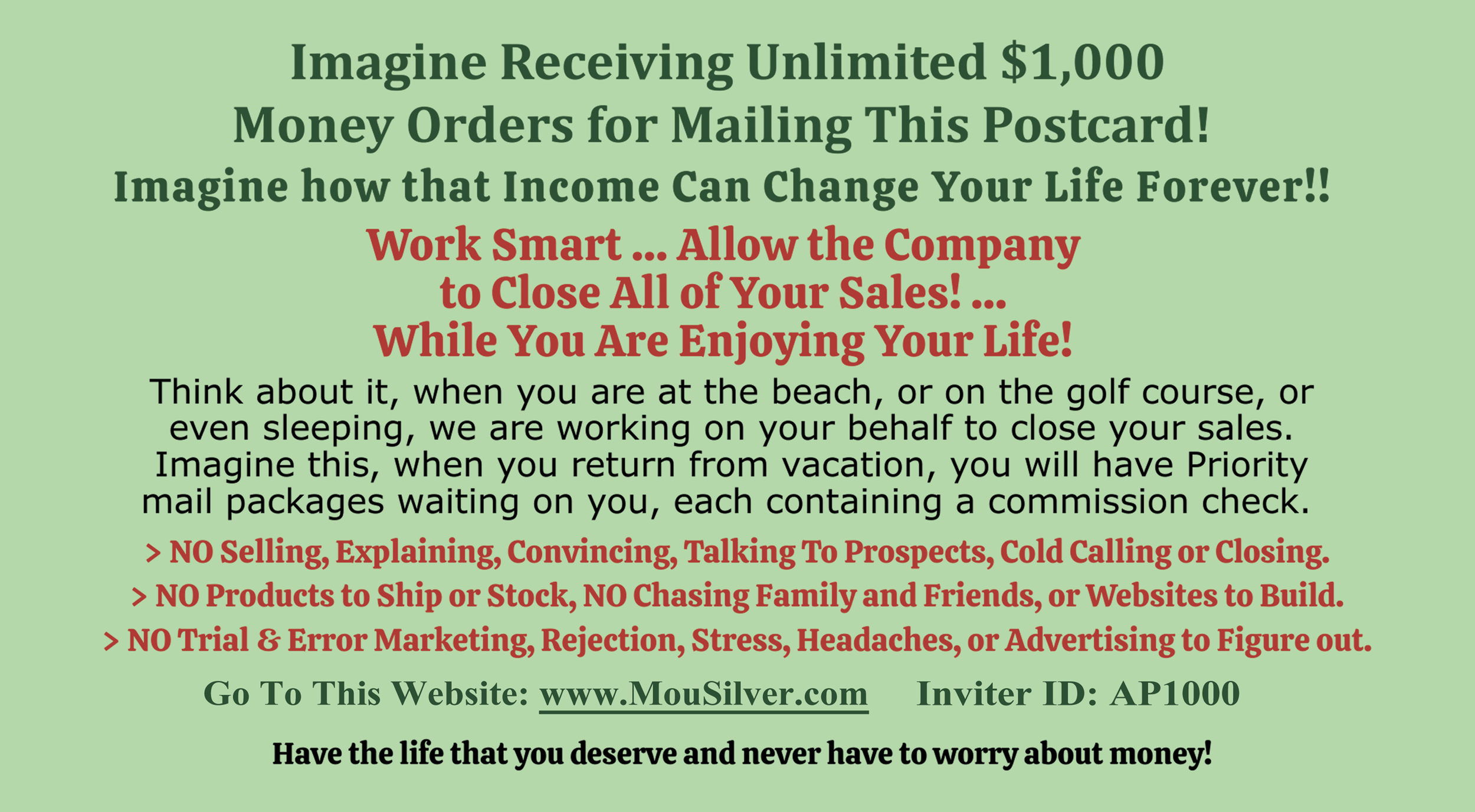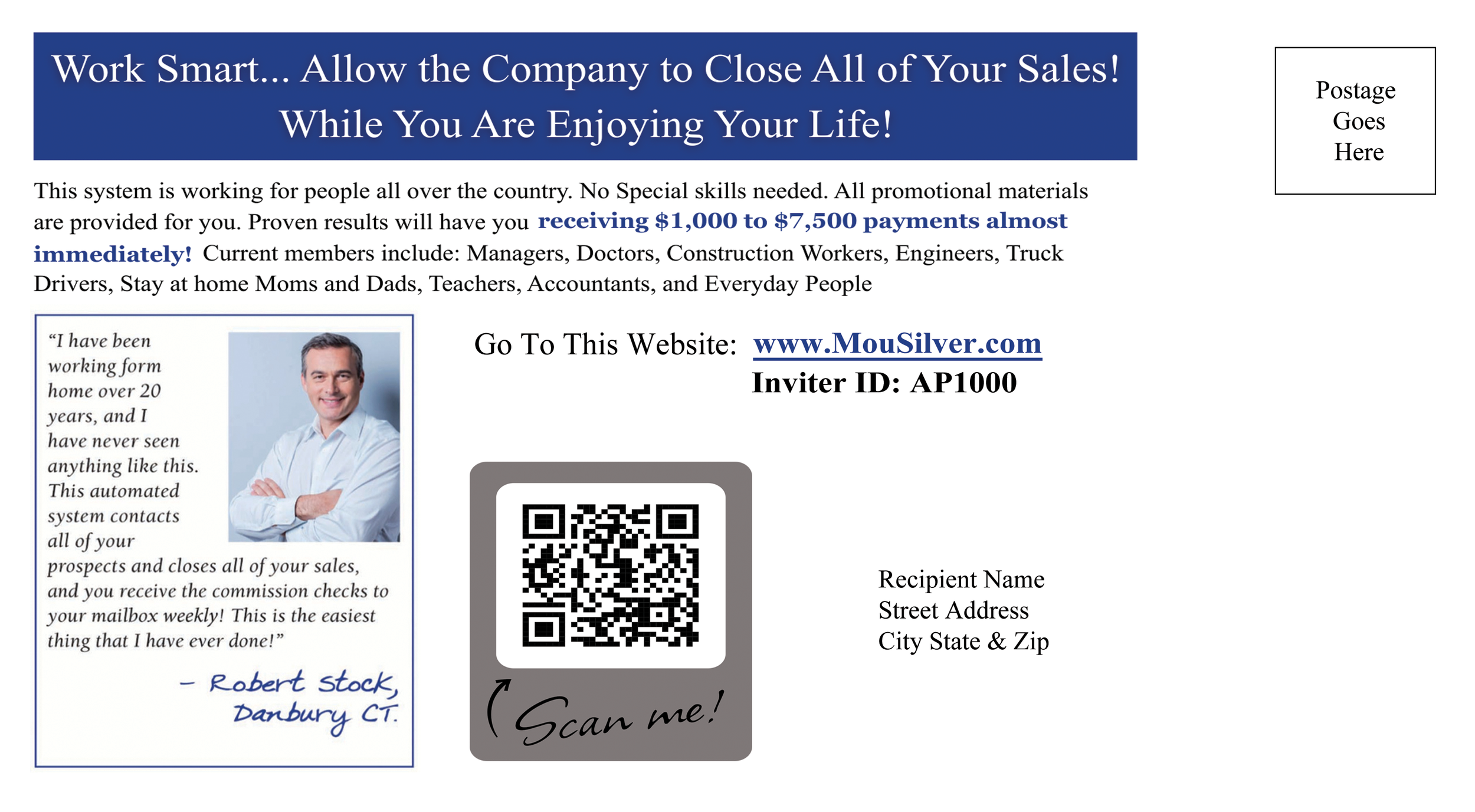 Materials that we print and mail from third party affiliate programs are not owned or controlled by MSIDR.COM, and we assume no liability whatsoever related to their operations or the claims made in their advertising. Our printing of third party materials is not to be taken as an endorsement of any program or company. It is your responsibility to make sure the claims are true for the product or program you are promoting. MSIDR.COM is not responsible, nor do we guarantee a response to your mailing. Our company does not track response rates of third party affiliate programs. It is your responsibility to communicate with the program you are promoting should you wish to be informed or track mailing responses.